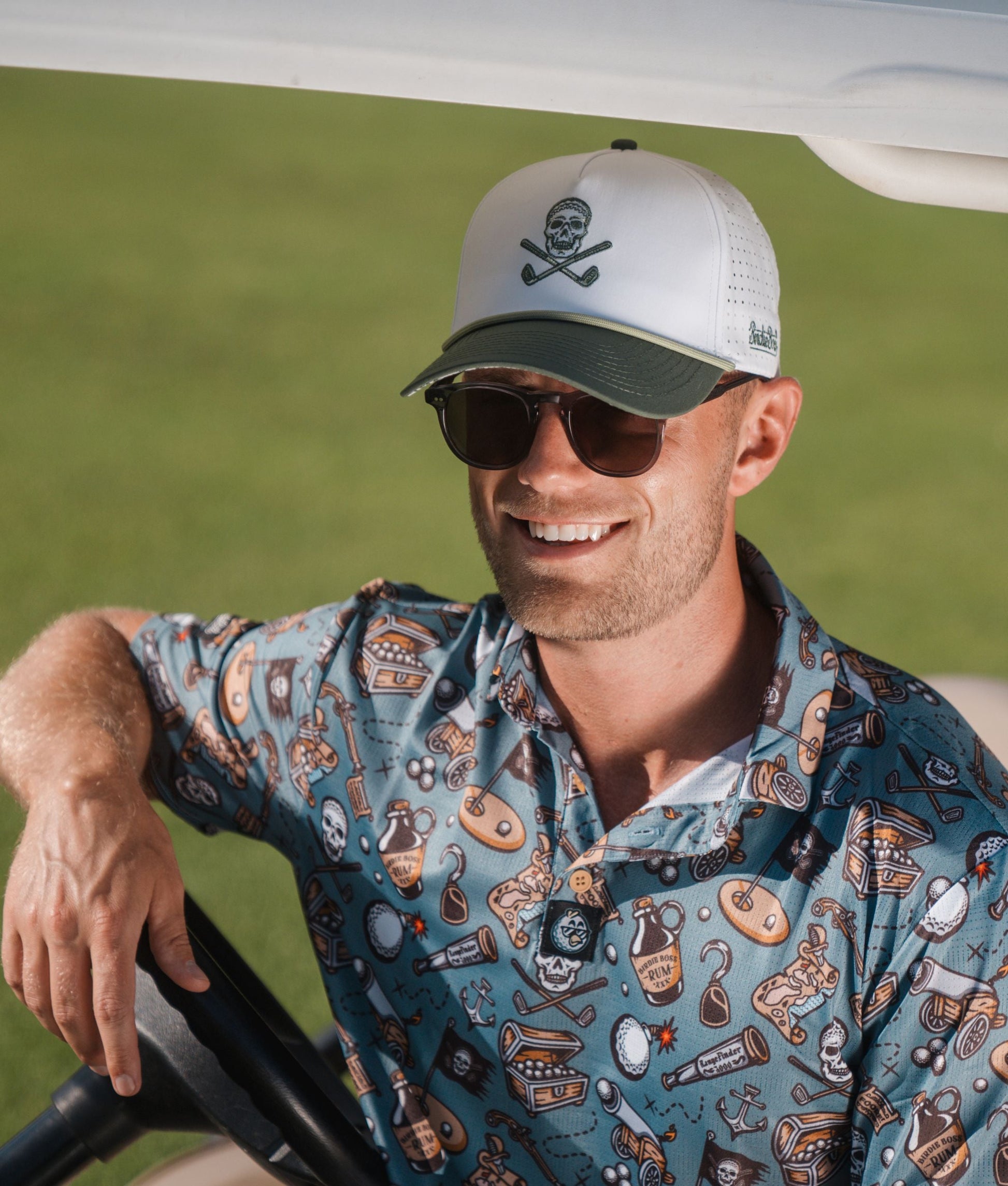 Embroidered front logo with contrasting rope on top brim. Fresh yellow color under the brim. Exclusively created by the BirdieBoss design team.