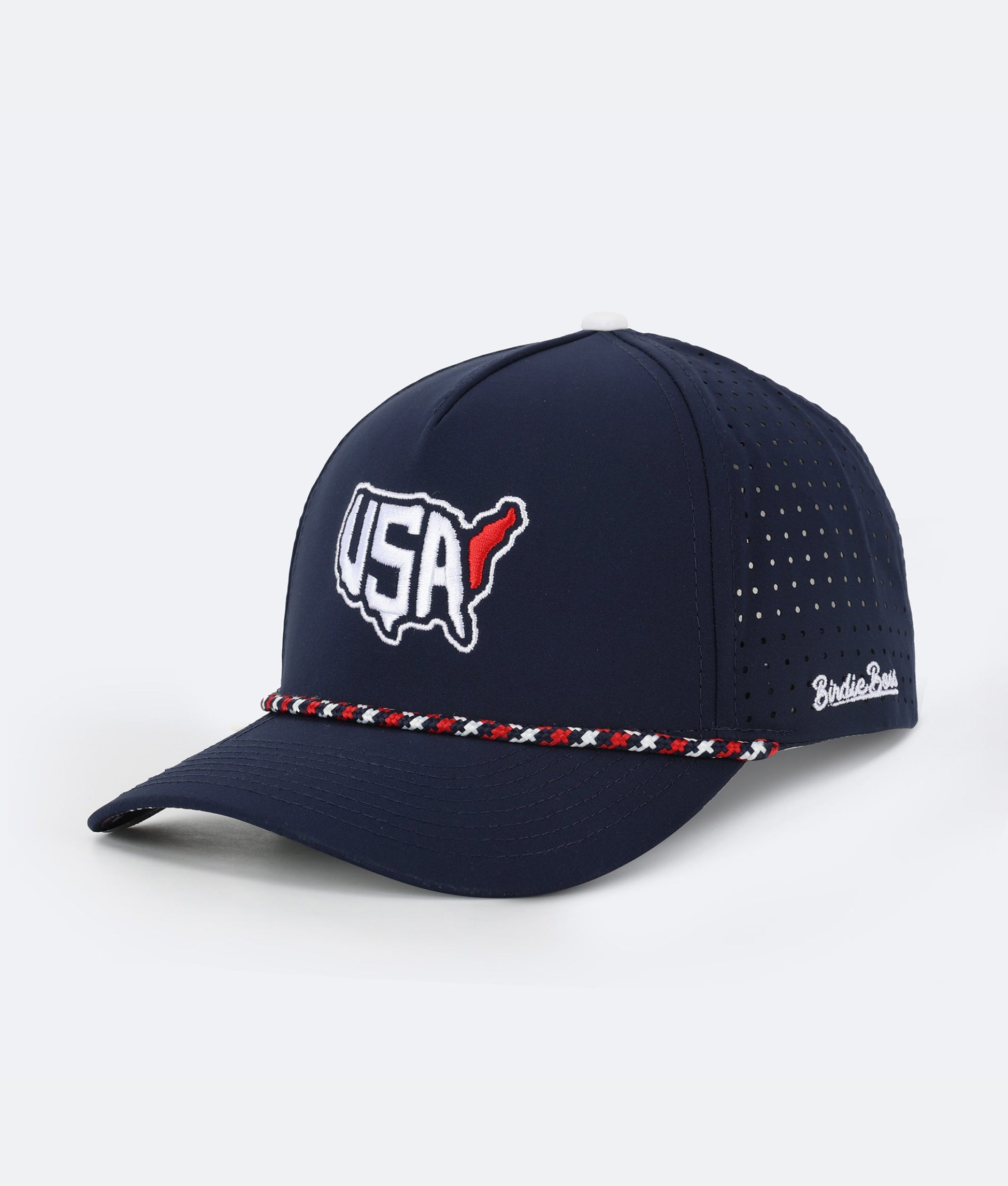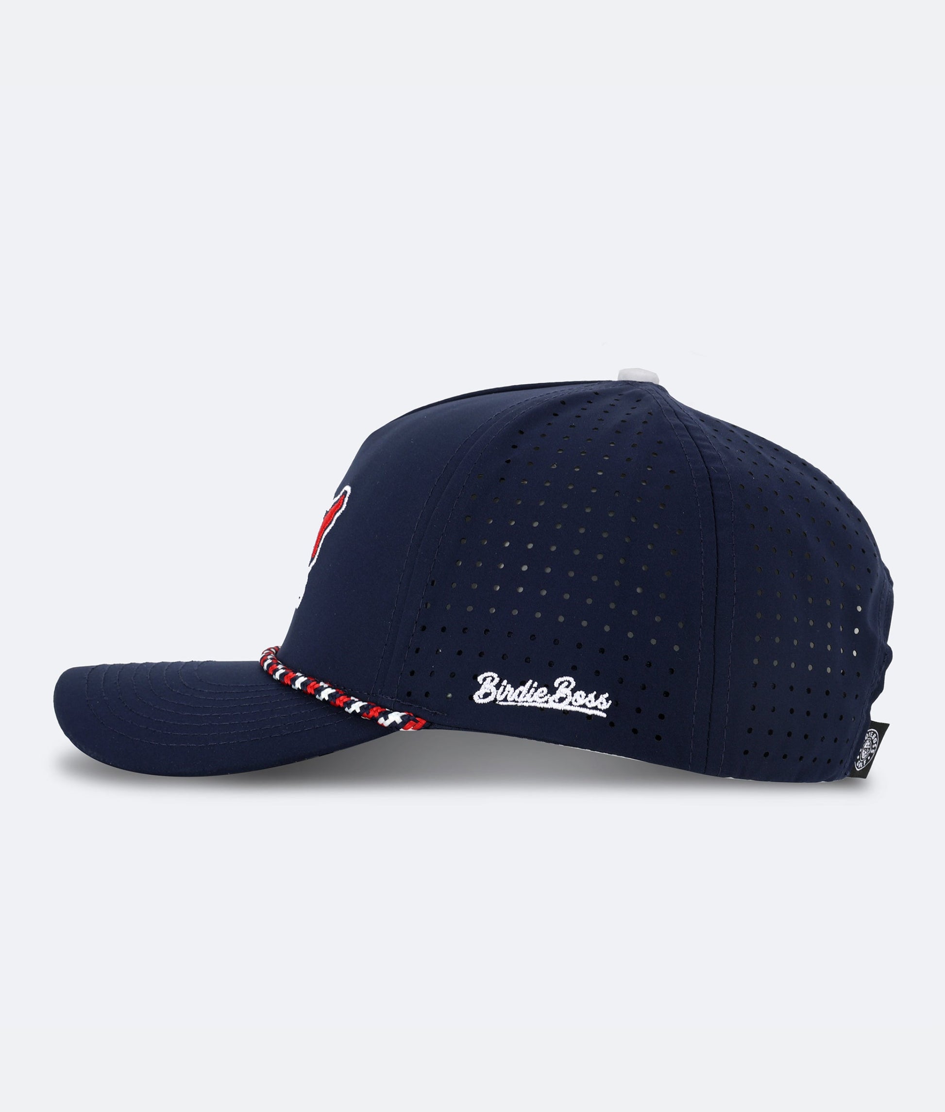 Embroidered front logo with contrasting rope on top brim. Fresh yellow color under the brim. Exclusively created by the BirdieBoss design team.